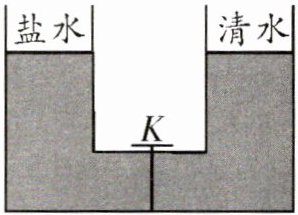 6. 如图所示,放在水平面上的连通器的两端分别装有清水和盐水,液面相平且静止,现在如果将阀门 K 打开,则 (