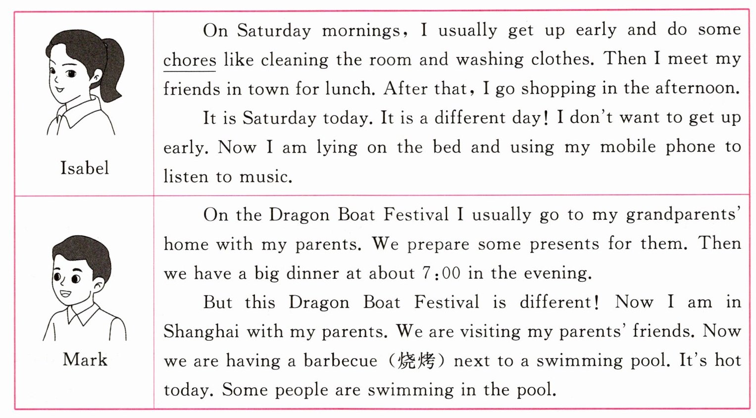 1. What does the word “chores” probably mean in Chinese? ( )