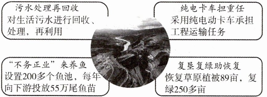 2024年4月,“青电入豫”工程骨干电源点玛尔挡水电站开始发电,该水电站及配套项目可保障电力稳定供应。其所在的三江源地区生态环境脆弱,玛尔挡水电站施工过程中采取了多种生态环境保护措施(如图)。