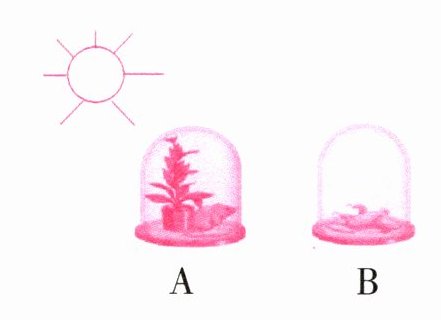 1771年,英国科学家普利斯特利做了个有趣的实验。他把两只老鼠分别放在A、B两个密闭的玻璃容器中并置于阳光下,其中,玻璃容器A中种有一棵植物,玻璃容器B中没有,如右图所示。