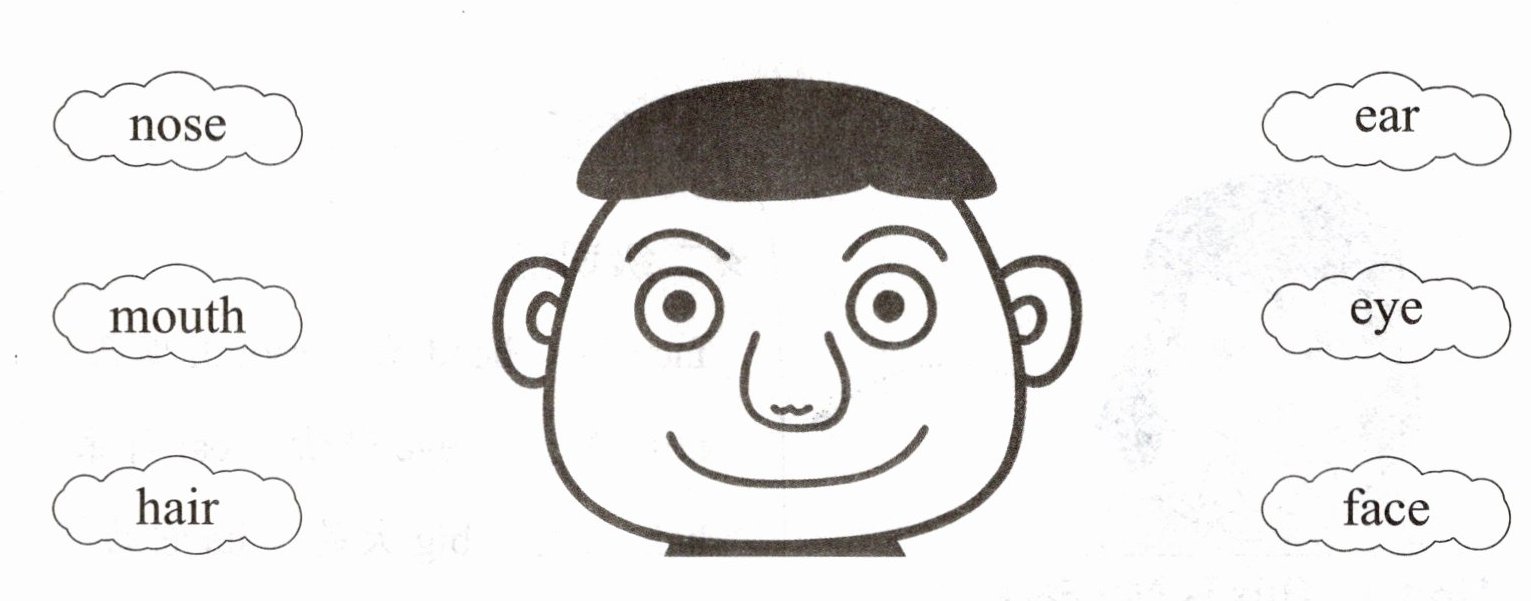 Ⅰ. nose - 鼻子;ear - 耳朵;mouth - 嘴巴;eye - 眼睛;hair - 头发;face - 脸。Ⅱ. 1. face 2. eyes 3. nose 4. ears 5. nose