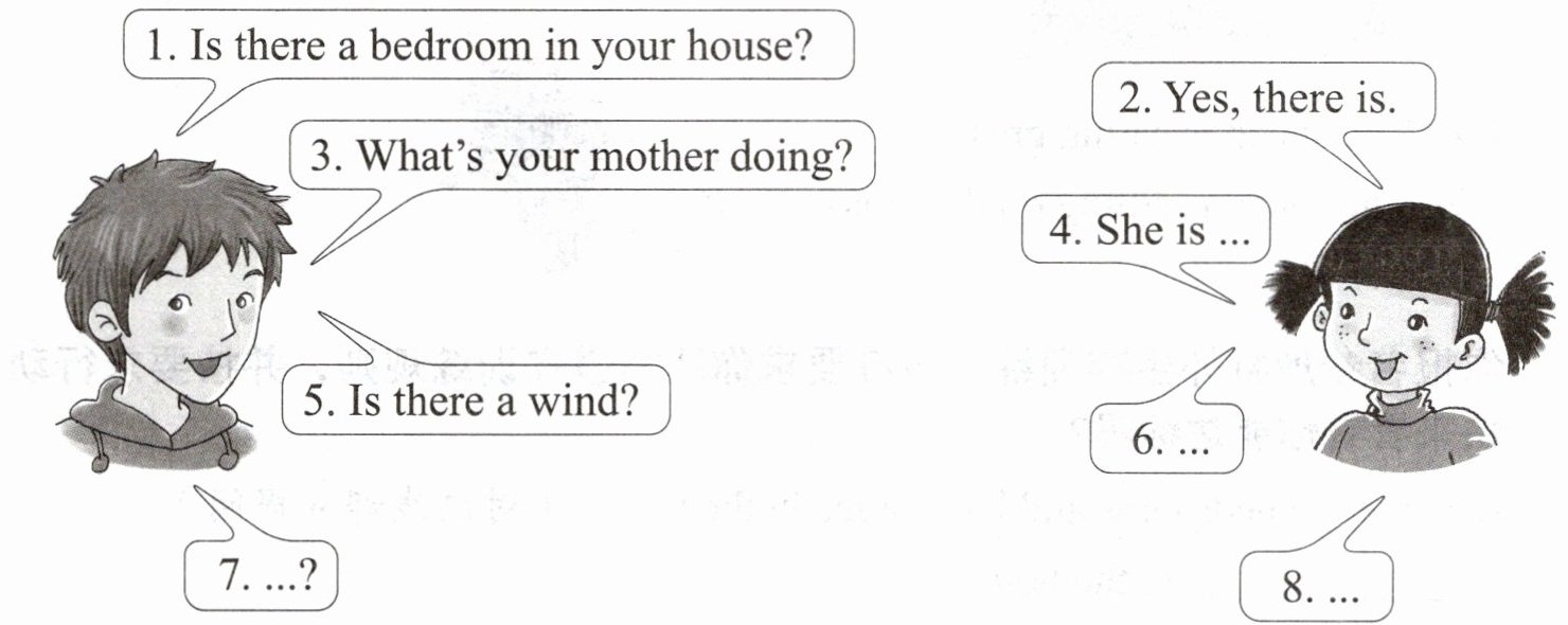 四、爸爸写了一个小短剧,结果粗心的淘淘不小心把油渍溅在上面了,请你根据提示,将剧本恢复原状。