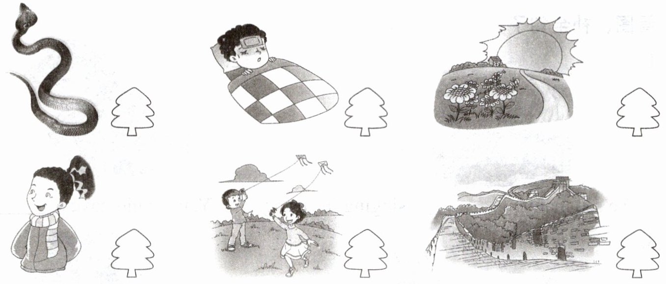 1. Great Wall 2. snake 3. fly kites 4. sunny 5. fever 6. happy