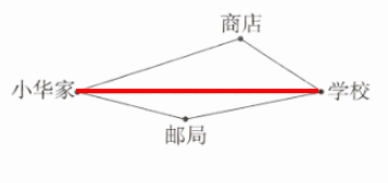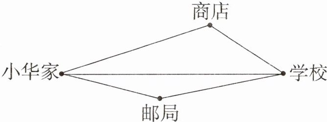 3. 小华从家到学校走哪条路最近?用笔把图上表示这条路的线段描粗。