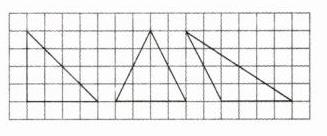 2. 在方格纸上画一个直角三角形、锐角三角形和钝角三角形。(小方格边长都是 1 厘米)