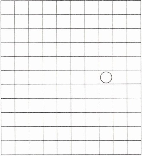9. 将$◯$先向上平移3格,再向左平移5格,再向右平移6格后的位置如下图,这个圆原来的位置在哪里? 请在图中画一画。
