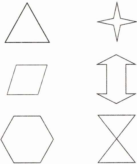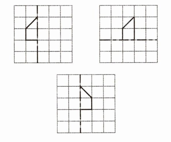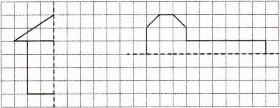 7. 画出下面图形的另一半,使它们成为轴对称图形。