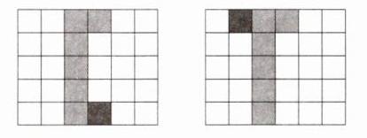 4. 在下面的图中涂一个小方格,使涂色部分成为一个轴对称图形。