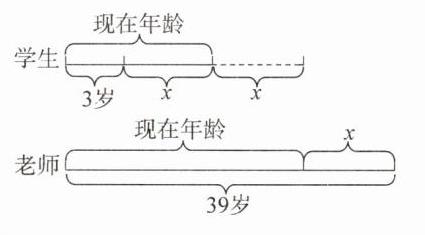 学生与老师的年龄差为$(39-3)÷3=12$(岁),老师的年龄为$39-12=27$(岁)。