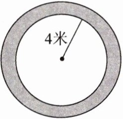 2. 在一个半径 4 米的圆形花坛周围有一条 1 米宽的小路(如图)。这条小路的面积是多少平方米?