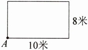 11. 一块长方形草地的一角有一个木桩 A(如图所示),一只羊被拴在木桩 A 上,如果拴羊的绳长 8 米,画图表示这只羊吃到草的部分。这只羊无法吃到草的面积是多少平方米?