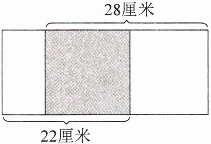 100 【提示】阴影部分正方形的边长相当于长方形的宽,则$28+22=50$(厘米)就是长方形的长加长方形的宽,周长就是$50×2=100$(厘米)。
