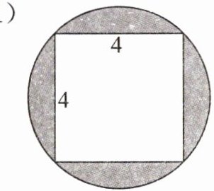 (1)$2r^{2}=16$ $\pi r^{2}-16=8\pi-16$(平方厘米)(或9.12平方厘米) (2)$3×7-\pi×3^{2}×\frac{1}{4}=21-\frac{9}{4}\pi$(平方厘米)(或13.935平方厘米)