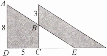 $8-3=5$(厘米) $(5+8)×5÷2×2=65$(平方厘米) 【提示】因为两个三角形重叠,所以左边的阴影部分和右边的阴影部分面积相等,而左边的阴影部分是一个梯形。