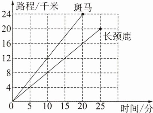 4. 如图所示的统计图表示斑马和长颈鹿的奔跑情况,下面说法中不符合图意的是(