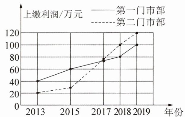 某电脑公司第一、第二两个门市部上缴利润统计图