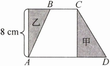 5. 已知图中正方形的边长为8厘米,阴影部分甲比乙大6平方厘米。那么梯形ABCD的面积有多大?