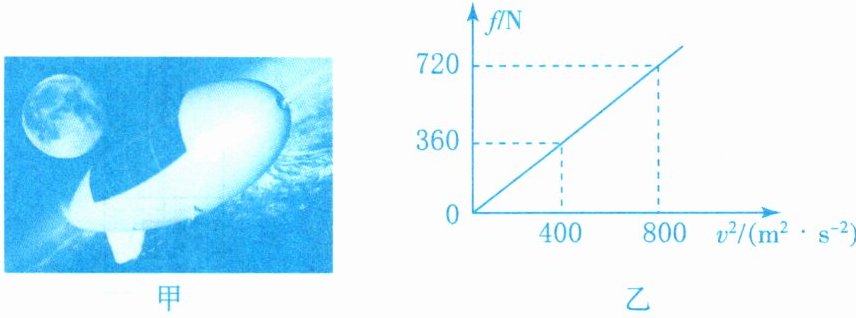 N。(平流层空气密度取$0.06kg/m^{3}$,g取10 N/kg)(3)若飞艇所受的空气阻力与风速的关系如图乙所示,推进器的功效(功效是指推进器的推力与功率的比值)为0.01 N/W,当平流层风速为40 m/s时,则飞艇推进器的功率为