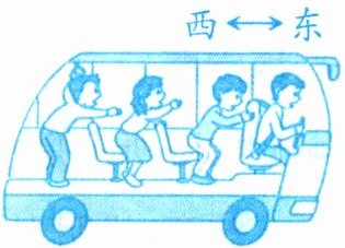 2. 如图所示,公交车上的乘客都拉好了扶手,当车的运动状态突然发生改变时,乘客都向东倾,产生此现象的原因可能是(