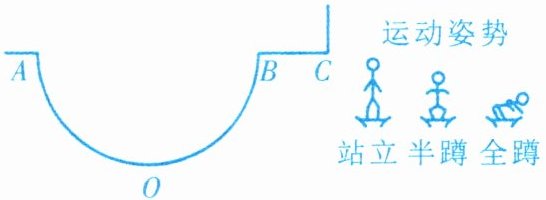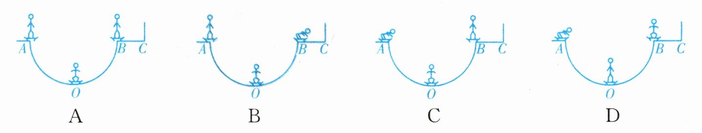 5. 滑板是深受青少年喜欢的一项体育运动。如图是U型滑台和运动员姿势的简化示意图。运动员在滑台A处由静止自由下滑,不计滑台摩擦和空气阻力,仅依靠滑行过程中运动员姿势的自然(不用力)变化,最有可能滑到滑台C处的是(