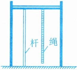 4. 如图所示,小明的体重为 G,支架横杆到地面的高度为 h,小明第一次顺着竖直的杆从杆顶匀速下滑到地面,第二次沿比杆粗糙的绳从绳顶端匀速下滑到地面,第一次比第二次需要的时间短,两次重力做的功为 $ W_{1} $、$ W_{2} $,功率为 $ P_{1} $、$ P_{2} $,则(