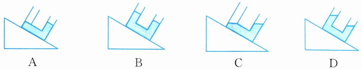 1. 固定斜面上的U形容器里装有适量水,水面静止,水面位置正确的是 (