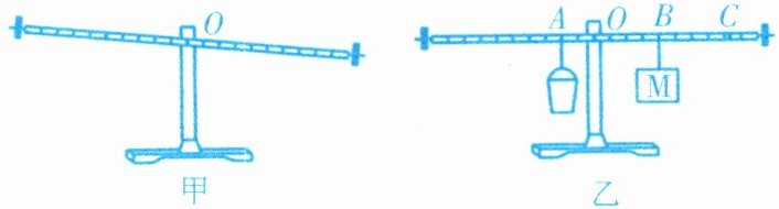 。2. 把空桶悬挂在 A 点,物体 M 悬挂在 B 点时,杠杆再次在水平位置平衡,测得 OA 的长度为 10 cm,OB 的长度为 20 cm,则空桶重为