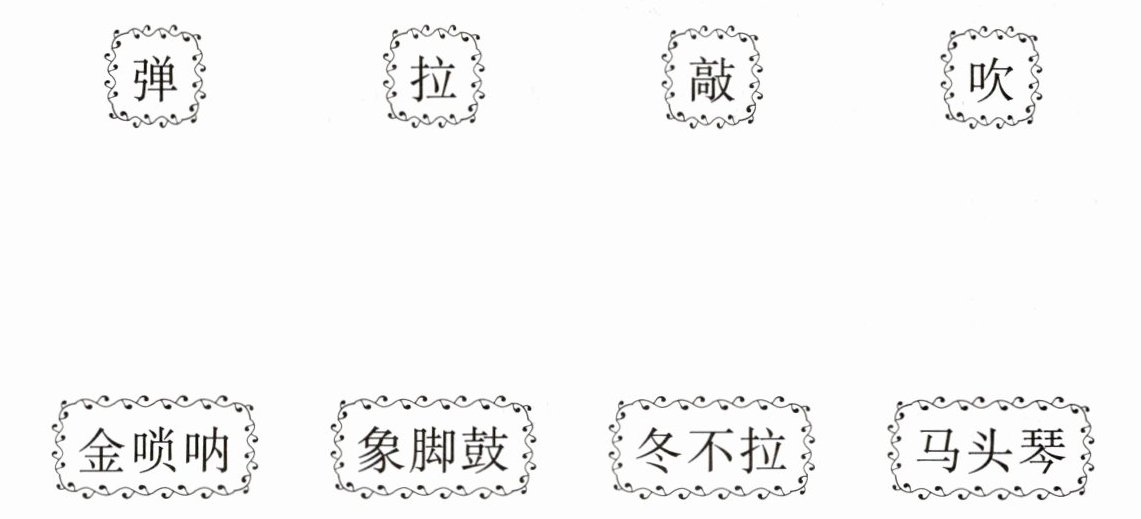 2. 小娃娃们分别是怎么演奏的?连一连。