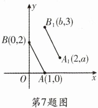 7. 如图所示,$A,B的坐标分别为(1,0),(0,2)$,若将线段$AB平移至线段A_{1}B_{1}$处,$A_{1},B_{1}的坐标分别为(2,a),(b,3)$,则$a + b$等于 (