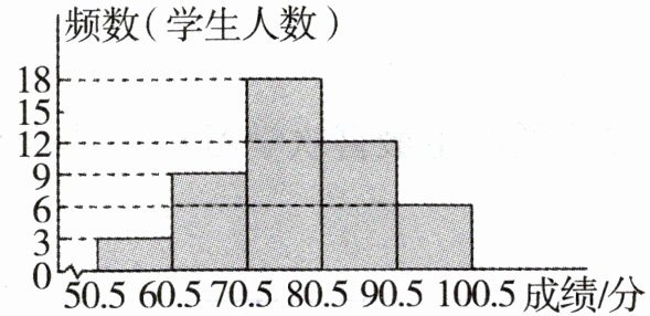 7. 某校将七年级1班学业质量测评中所有学生的体育成绩(满分100分,成绩都为整数)进行整理,并绘制出如图所示的频数分布直方图. 根据统计图,可知下列结论不正确的是 (