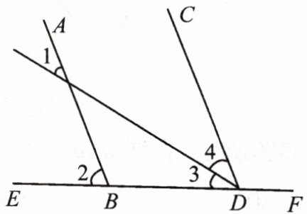 10. 如图所示,$AB// CD$,$BC// DE$,那么$∠B + ∠D= $______