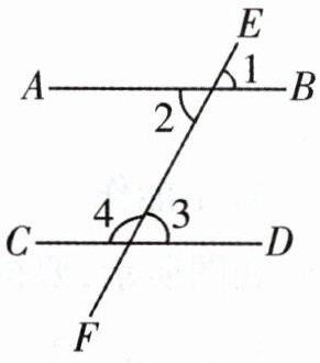 13. 如图所示,直线$AB$,$CD被EF$所截,$∠2 + ∠4= 180^{\circ}$,$∠1= 50^{\circ}$,求$∠3$的度数.