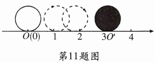 11. 如图所示,直径为 $1$ 个单位长度的圆从原点沿数轴向右滚动一周 (不滑动),圆上的一点由原点到达点 $O^{\prime}$,点 $O^{\prime}$ 的数值是