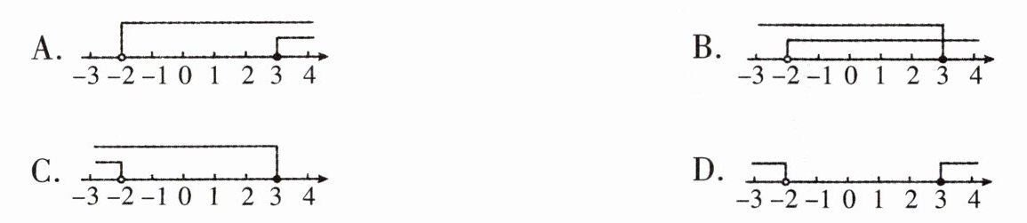 6. 不等式组$\begin{cases}3x + 2 > 2x, \\ -(x - 4) \geq 1\end{cases} $的解集在数轴上表示正确的是 (
