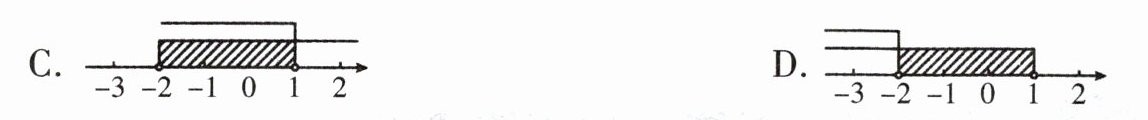 7. 已知点$P(a - 1, a + 2)$在平面直角坐标系的第二象限内,则$a$的取值范围(阴影部分)在数轴上可表示为 (