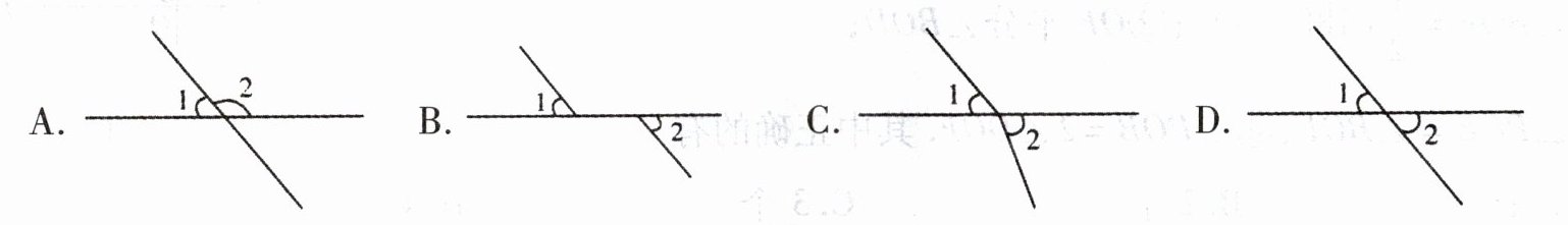 4. 下列各图中,$∠1和∠2$是对顶角的是 ()