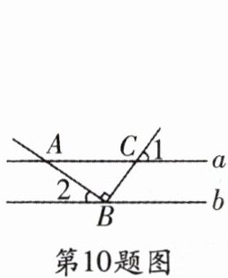 10. 如图所示,直线$a// b$,点$B在直线b$上,且$AB⊥BC,∠1= 55^{\circ}$,则$∠2$的度数为 (