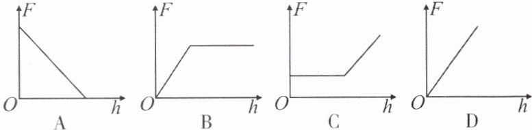 中虚线位置。能大致反映铁块下降过程中所受浮力的大小与铁块下表面浸入液体深度关系的图像是()