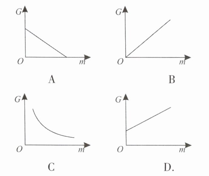 5. 如图是四位同学绘制的重力 - 质量图像,其中正确的是 ()