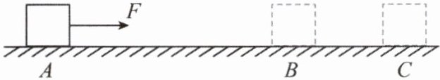 10. 如图,粗糙程度相同的水平地面上,重$30N的物块在AB段受F = 10N$的水平拉力作用,向右做匀速直线运动,到$B$点时撤去水平拉力,物块仍继续运动,到$C$处静止。下列说法正确的是 ()