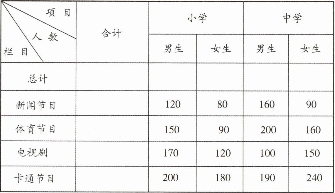 三、下面是电视节目喜欢情况统计表。(统计时每人只能选一种节目)