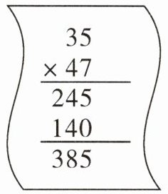 $\begin{array}{r r r}&&&&3&5 \\ ×&&&&4&7 \\ \hline &&&2&4&5 \\ +&&1&4&0&0 \\ \hline &&1&6&4&5\end{array}$