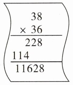 错误之处:在计算$38×36$时,先用$6$乘$38$得$228$,再用十位上的$3$乘$38$得$114$,这里的$114$实际表示$1140$,末位应与十位对齐,原竖式与个位对齐了,并且最后结果相加时出现错误。