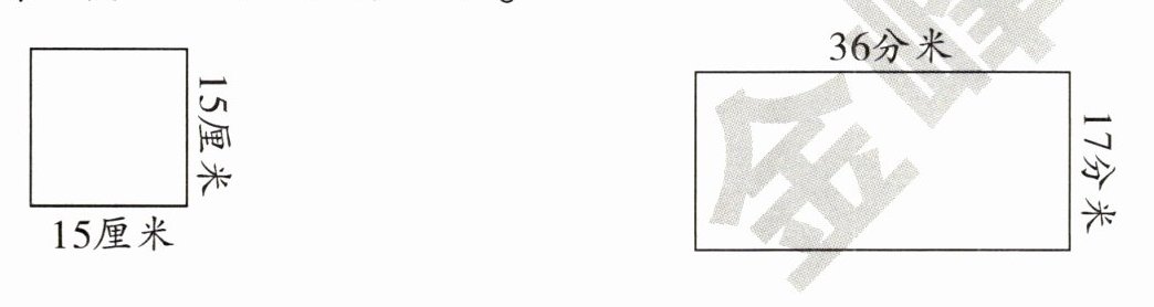 综上,正方形的面积是$\boldsymbol{225}$平方厘米,长方形的面积是$\boldsymbol{612}$平方分米。