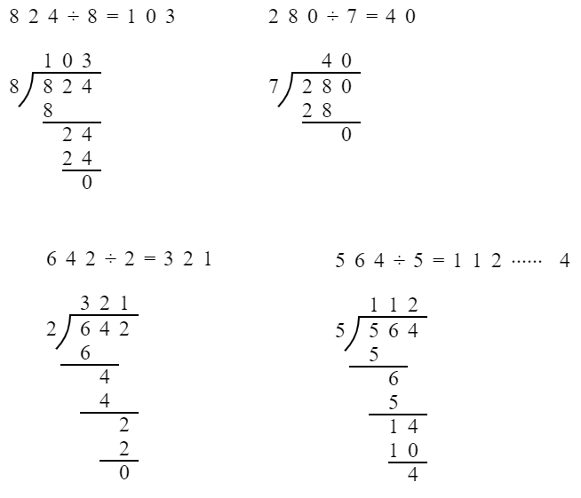 $732÷ 6$ $832÷ 8$ $864÷ 4$