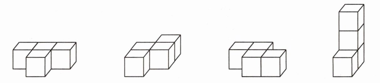 【解析】:第一个几何体从前面看是三个左右相连的正方形,符合要求;第二个几何体从前面看是三个左右相连的正方形,符合要求;第三个几何体从前面看是三个左右相连的正方形,符合要求;第四个几何体从前面看是竖着的三个正方形和一个正方形,不符合要求。