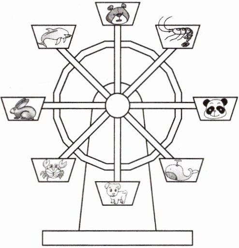 摩天轮顺时针旋转$90^{\circ }$,小熊会转到哪个位置呢? 圈出来。