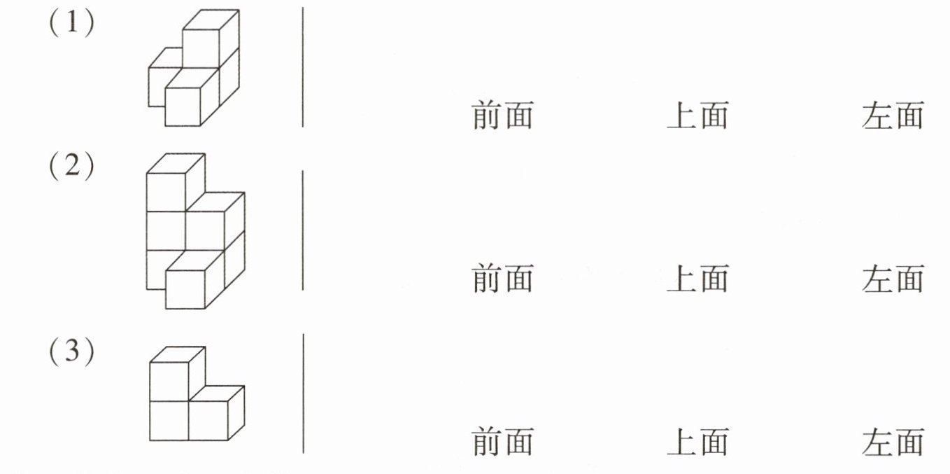 2. 从不同方向看下面的物体,看到的分别是什么?在下面画一画。