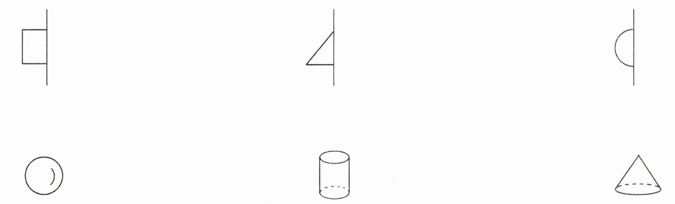 一、上面的图形旋转一周后,会得到什么立体图形?用线连一连。