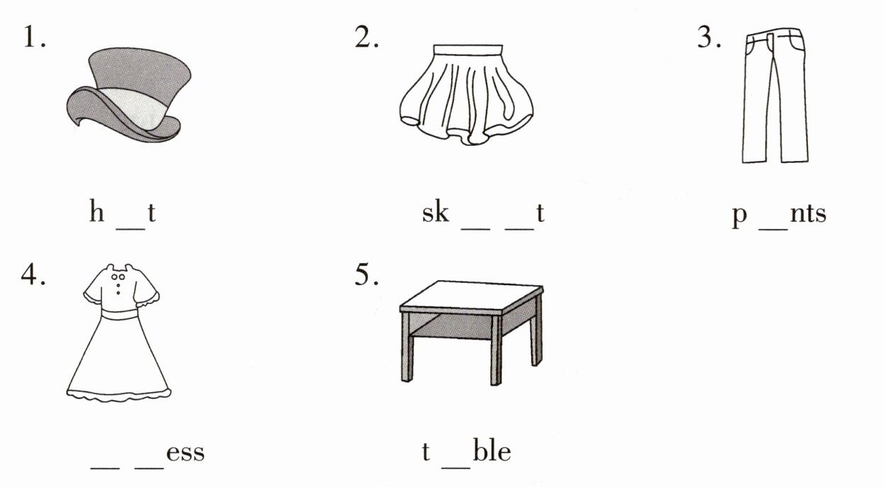 一、看图补全单词。